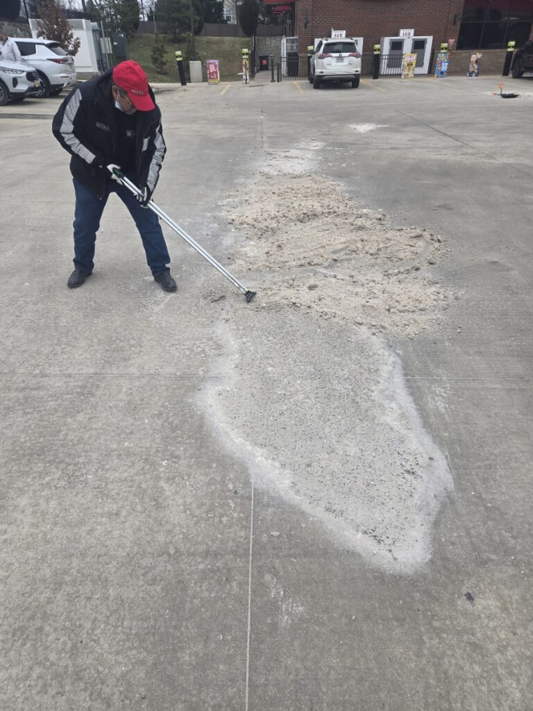 Amy also requested that any volunteers in the area stop by the gas station, educate the employees about the situation, and request them to sweep it up. At least two Salt Watch volunteers stopped by and had conversations with some of the employees about the excessive salt. The employees assured the volunteers that the piles would be cleaned up. In case they weren’t, Amy assembled a crew of a few volunteers to help the employees clean up the salt. This wasn’t necessary, however, as within 48 hours of the oversalting being reported, the salt piles were cleaned up by store employees. Employees swept and scraped up the salt and contained it to use sparingly during future storm events.