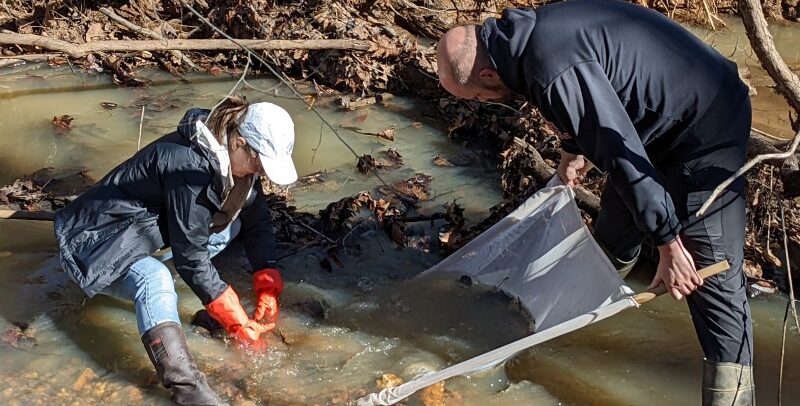 After studying existing legislation and meeting with legislators regularly, the Preserve Grayson team realized that Virginia did not have laws sufficient to protect people from the harmful effects of tree farms. A Grayson Preserve member thought about the problem and came up with a new strategy. “So many groups learn that it’s very difficult to protect the environment,” she observed, “but we still have the Clean Water Act.” If the Preserve Grayson team could prove that the Christmas tree farms were causing water quality degradation, they might be able to fight for change using the Clean Water Act. The team decided they were going to get their hands wet and use Virginia Save Our Streams (VA SOS) to show that the large-scale Christmas tree farms were polluting streams and waterways.