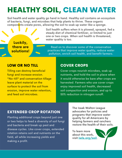 This fact sheet provides examples of conservation practices that can be implemented on the landscape to promote healthy soil and clean water.