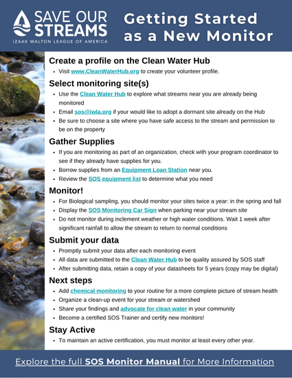 A quick guide of steps to take as a newly certified Save Our Streams monitor.