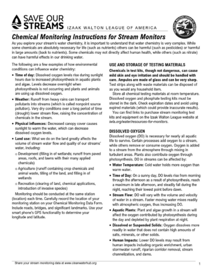 Detailed instructions on conducting Save Our Streams chemical monitoring.