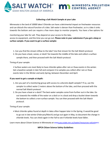 Salt Watch Lake Monitoring Protocol