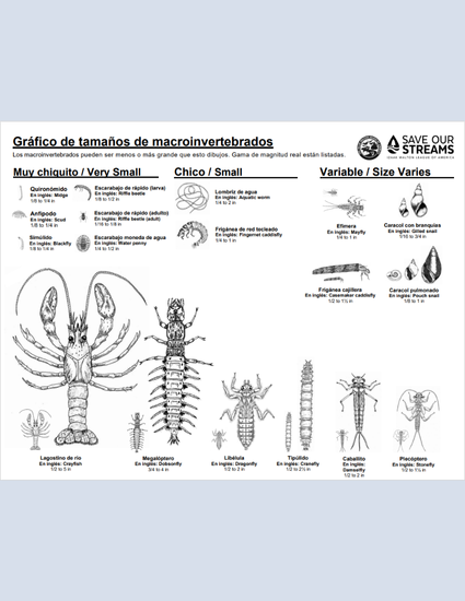 Aquatic Macroinvertebrate Pollution Sensitivities and Size Chart (Spanish)