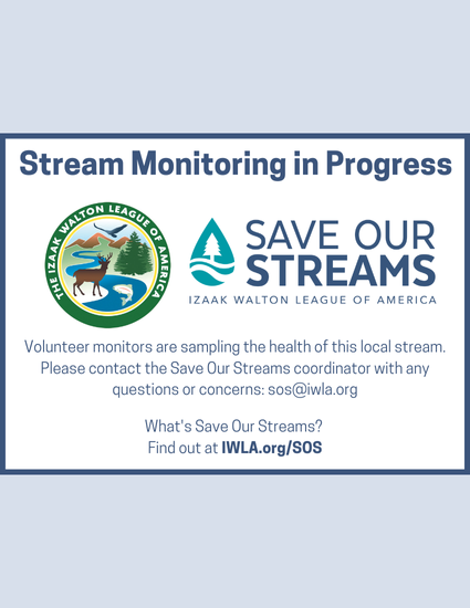 Place this sign on your car dashboard or window to let curious people passing by know that you are parked there in order to conduct stream monitoring.