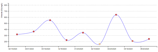 - Groundwater contamination is possible for sites that have a nearby groundwater discharge source and show elevated chloride results year-round.